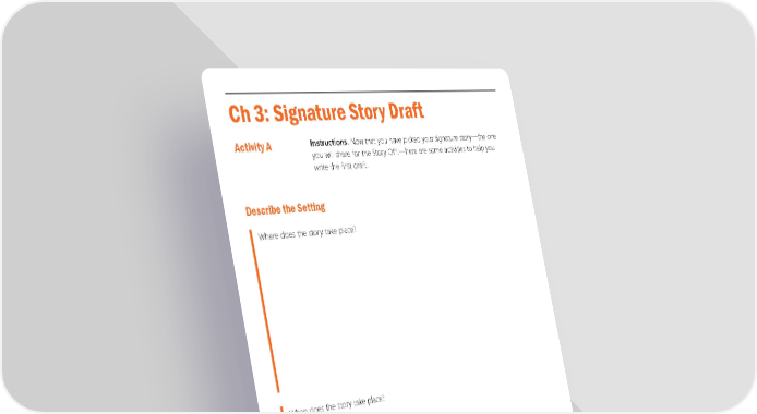 Ch 3: Signature Story Draft Activity A Instructions. Now that you have picked your signature story—the one you will share for the Story Off!—here are some activities to help you write the first draft. Describe the Setting Where does the story take place? When does the story take place? 10