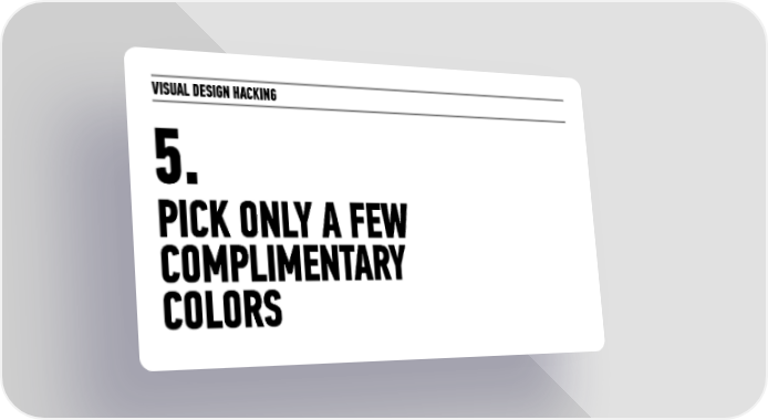 VISUAL DESIGN HACKING 5. PICK ONLY A FEW COMPLIMENTARY COLORS Visual Design Hacking | Storytelling Workshop Page 30 Page 32