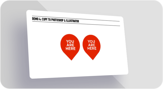 DEMO 4: COPY TO PHOTOSHOP & ILLUSTRATOR YOU ARE HERE Visual Design Hacking | Storytelling Workshop Page 52 Page 54