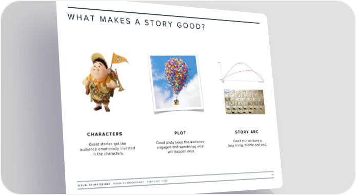 WHAT MAKES A STORY GOOD? CHARACTERS PLOT STORY ARC Great stories get the Good plots keep the audience Good stories have a audience emotionally invested engaged and wondering what beginning, middle and end. in the characters. will happen next. VISUAL STORYTELLING PURIN PHANICHPHANT FEBRUARY 2016 9